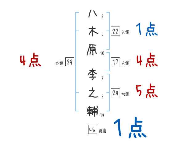 八木原李之輔さんの画数の鑑定結果