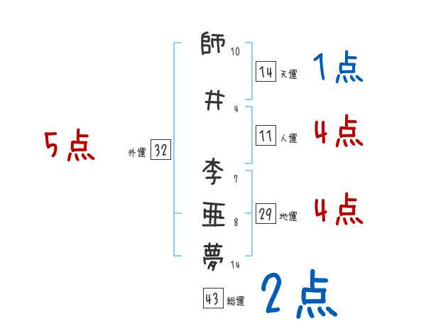 家系が持つ宿命的な運勢を表します。祖先から受け継いだ苗字ですので自分の力が及びません。家柄を象徴します。