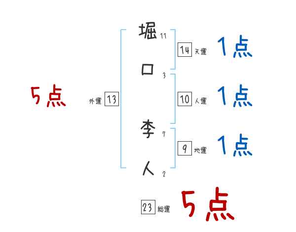総運![]() | 堀口李人さんの総運は23画の5つ星!想像力に優れ活力がある。一代で成功し名誉を手に入れる。 あなたの人生を表す1番重要な運勢です。生涯を通じて影響する総合運となり、主に50歳以降の晩年期に影響を及ぼします。 |