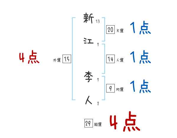 新江李人さんの画数の鑑定結果