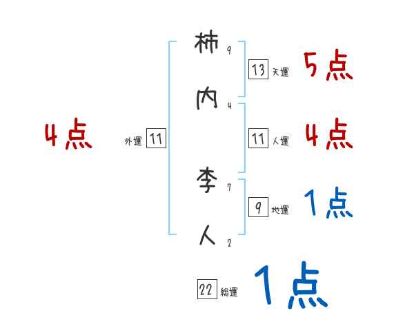 柿内李人さんの画数の鑑定結果