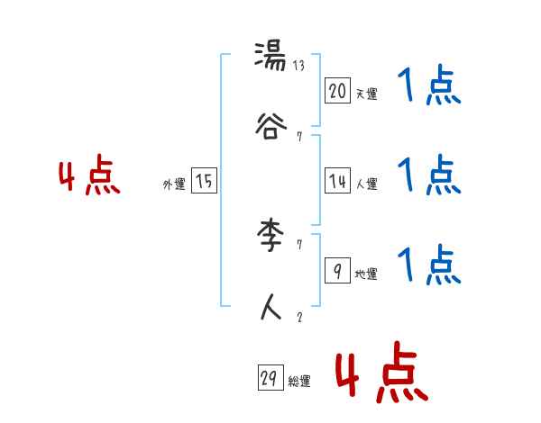 湯谷李人さんの画数の鑑定結果