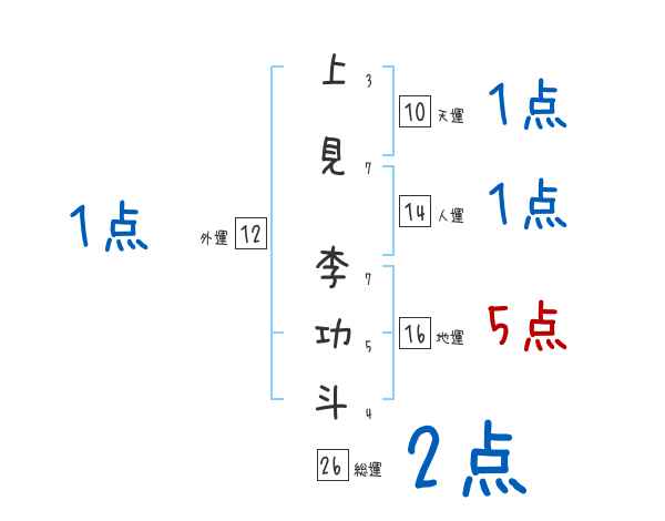 地運![]() | 上見李功斗さんの地運は16画の5つ星!人望が厚く大きく発展する。逆転成功が見える。 個性を表す基礎的な運勢です。性格形成や対人関係、行動力など家庭環境に影響されます。主に誕生してから20歳くらいまでの若年期の運勢を表します。 |