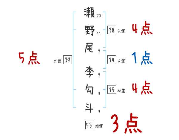 瀬野尾李勾斗さんの画数の鑑定結果