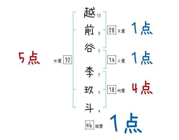 越前谷李玖斗さんの画数の鑑定結果