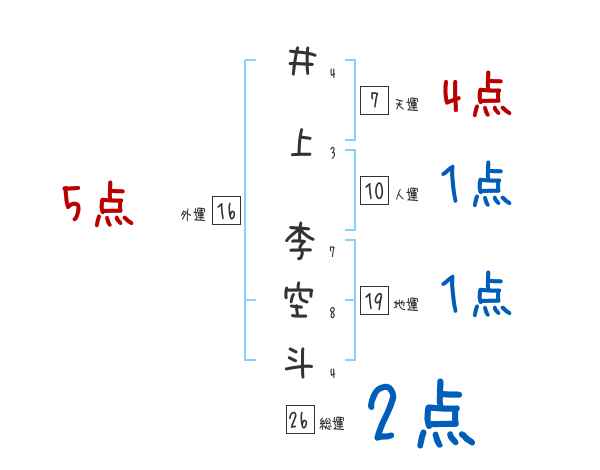 家系が持つ宿命的な運勢を表します。祖先から受け継いだ苗字ですので自分の力が及びません。家柄を象徴します。