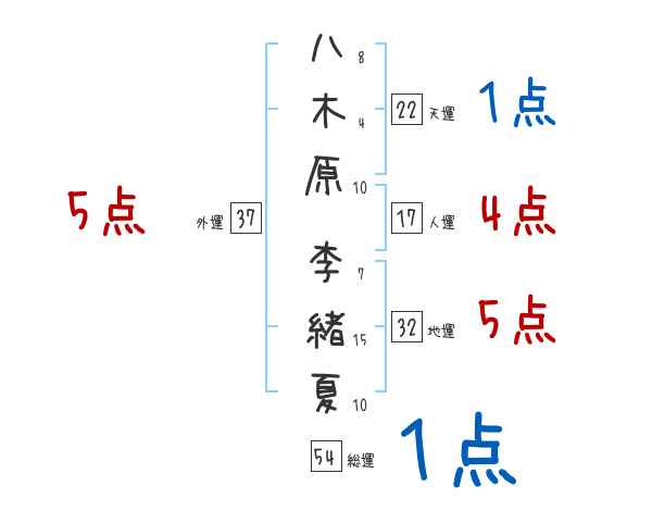 外運![]() | 八木原李緒夏さんの外運は37画の5つ星!努力家で順応性に優れる。現実的な考え方ができ忠実に物事をこなす。 生活面を象徴する運勢です。外部から受ける影響力を表し、結婚運、家庭運や職場、環境への順応性を表します。 |