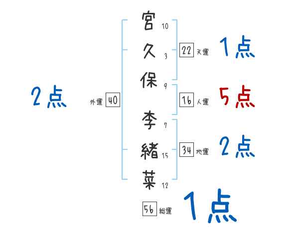 宮久保李緒菜さんの画数の鑑定結果