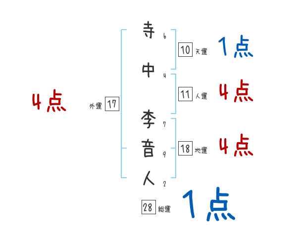 寺中李音人さんの画数の鑑定結果