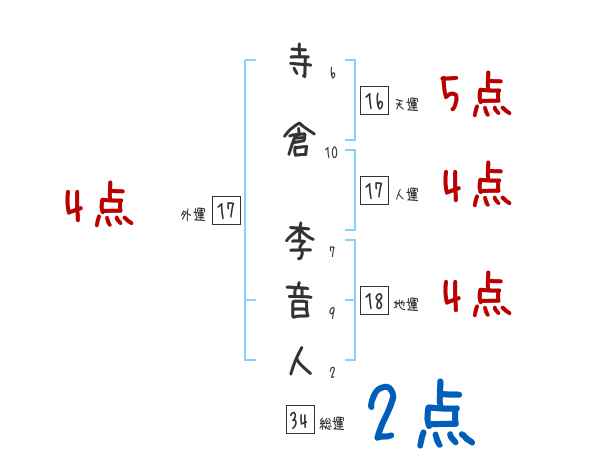 寺倉李音人さんの画数の鑑定結果