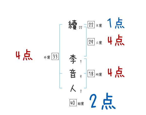 外運![]() | 續李音人さんの外運は33画の4つ星!権力志向でプライドが高い。勇気があり運を切り開き成功する。 生活面を象徴する運勢です。外部から受ける影響力を表し、結婚運、家庭運や職場、環境への順応性を表します。 |