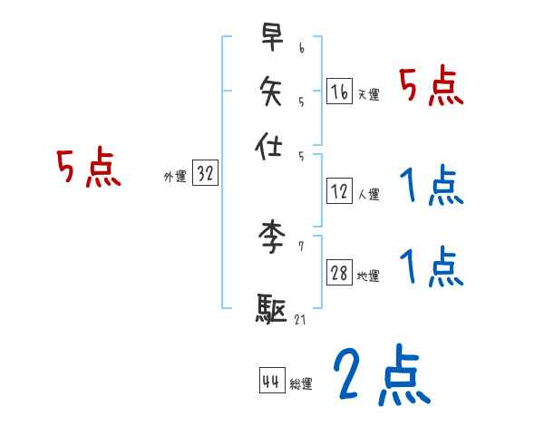外運![]() | 早矢仕李駆さんの外運は32画の5つ星!柔軟性があり成功する。チャンスが多く金運が良い。 生活面を象徴する運勢です。外部から受ける影響力を表し、結婚運、家庭運や職場、環境への順応性を表します。 |