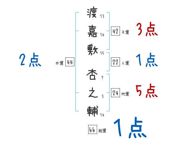 渡嘉敷杏之輔さんの画数の鑑定結果