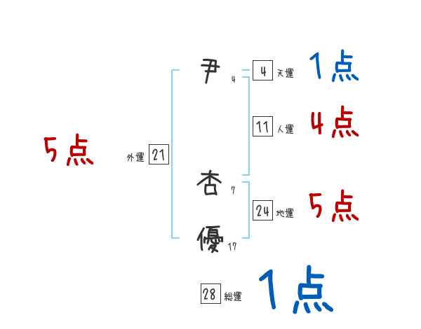 尹杏優さんの画数の鑑定結果