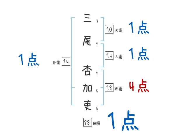 三尾杏加吏さんの画数の鑑定結果