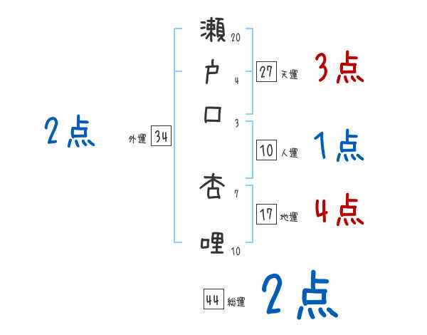瀬戸口杏哩さんの画数の鑑定結果