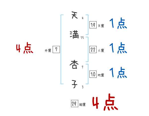 天満杏子さんの画数の鑑定結果