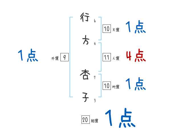 行方杏子さんの画数の鑑定結果