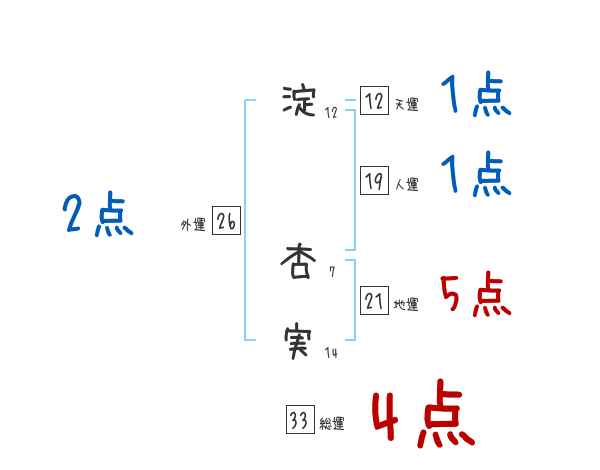 淀杏実さんの画数の鑑定結果