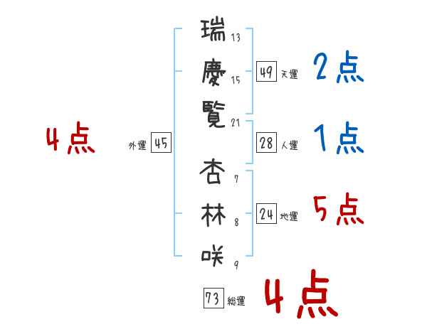 瑞慶覧杏林咲さんの画数の鑑定結果