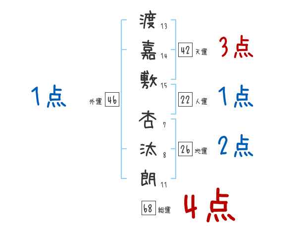 渡嘉敷杏汰朗さんの画数の鑑定結果
