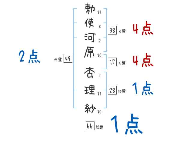 天運![]() | 勅使河原杏理紗さんの天運は38画の4つ星!温厚な性格で技術的な才能を発揮する。職人的な仕事に向いている。 家系が持つ宿命的な運勢を表します。祖先から受け継いだ苗字ですので自分の力が及びません。家柄を象徴します。 |