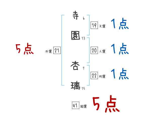 寺園杏璃さんの画数の鑑定結果