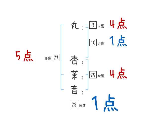 外運![]() | 丸杏茉音さんの外運は21画の5つ星!統率力がある。独立し成功する。名誉を手に入れる。 生活面を象徴する運勢です。外部から受ける影響力を表し、結婚運、家庭運や職場、環境への順応性を表します。 |