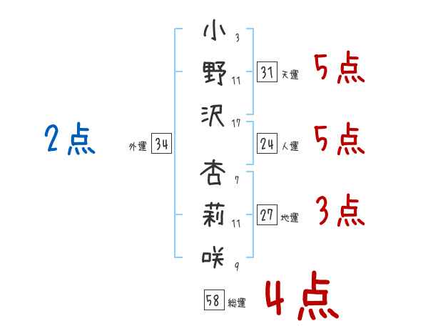 小野沢杏莉咲さんの画数の鑑定結果
