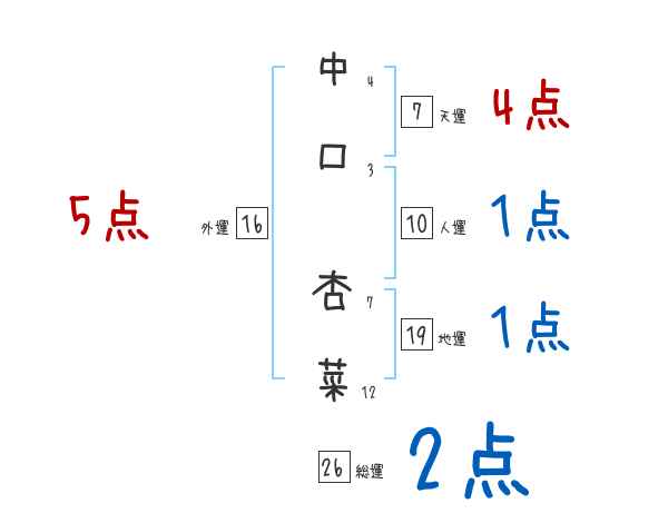 中口杏菜さんの画数の鑑定結果