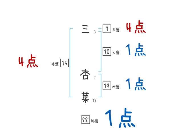 三杏菜さんの画数の鑑定結果