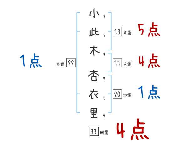 外運![]() | 小此木杏衣里さんの外運は22画の1つ星!努力することが苦手ないっぽう手先が器用。芸術性にも優れる。 生活面を象徴する運勢です。外部から受ける影響力を表し、結婚運、家庭運や職場、環境への順応性を表します。 |