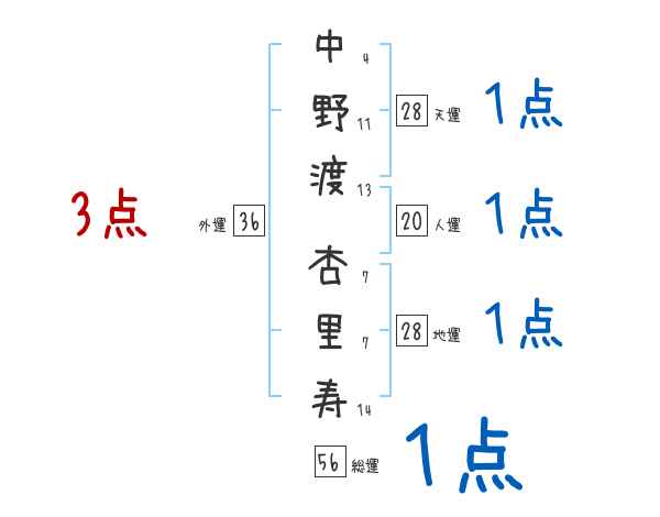 家系が持つ宿命的な運勢を表します。祖先から受け継いだ苗字ですので自分の力が及びません。家柄を象徴します。