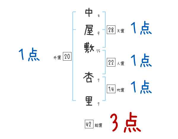 天運![]() | 中屋敷杏里さんの天運は28画の1つ星!家庭環境に注意。スポーツで活躍できる能力があるかも。 家系が持つ宿命的な運勢を表します。祖先から受け継いだ苗字ですので自分の力が及びません。家柄を象徴します。 |