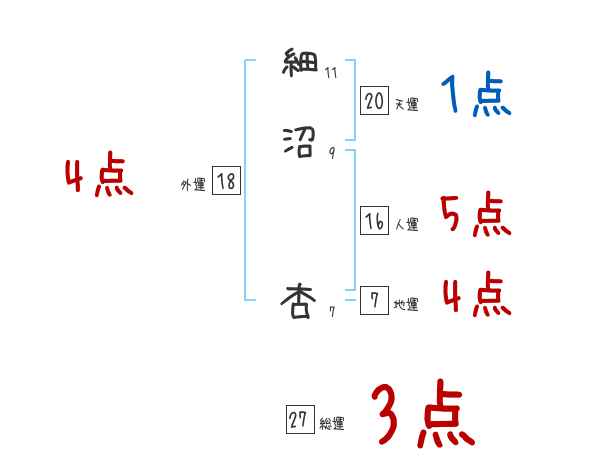 細沼杏さんの画数の鑑定結果