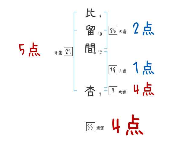 地運![]() | 比留間杏さんの地運は7画の4つ星!強い意志や信念を持ち独立心が強い。自立する。 個性を表す基礎的な運勢です。性格形成や対人関係、行動力など家庭環境に影響されます。主に誕生してから20歳くらいまでの若年期の運勢を表します。 |