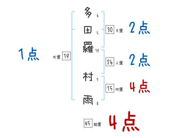 多田羅村雨さんの画数の鑑定結果