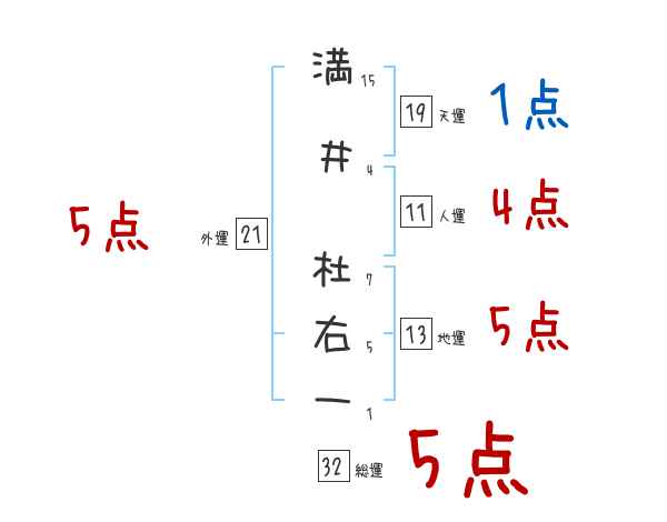 満井杜右一さんの画数の鑑定結果