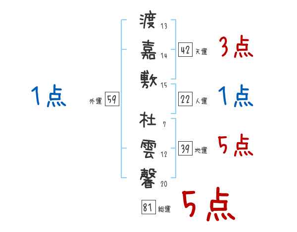 渡嘉敷杜雲馨さんの画数の鑑定結果