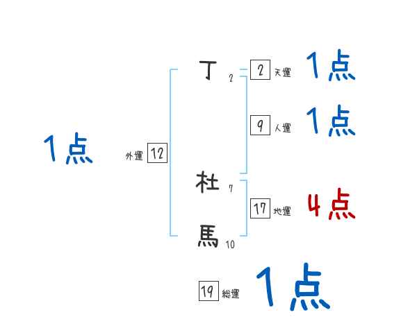天運![]() | 丁杜馬さんの天運は2画の1つ星!優しいですが積極性や意思の強さに欠ける傾向があります。家庭環境の乱れに注意しましょう。 家系が持つ宿命的な運勢を表します。祖先から受け継いだ苗字ですので自分の力が及びません。家柄を象徴します。 |