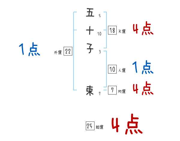 人運![]() | 五十子束さんの人運は10画の1つ星!不安を感じやすい傾向。ストレスを抱えないように注意しましょう。 性格や才能などを表す2番目に重要な運勢です。人間関係や協調性、社会的な成功に影響します。主に20歳から50歳ぐらいまでの中年期の運勢を表します。 |