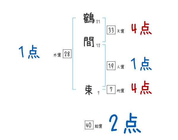 天運![]() | 鶴間束さんの天運は33画の4つ星!権力志向でプライドが高い。勇気があり運を切り開き成功する。 家系が持つ宿命的な運勢を表します。祖先から受け継いだ苗字ですので自分の力が及びません。家柄を象徴します。 |
