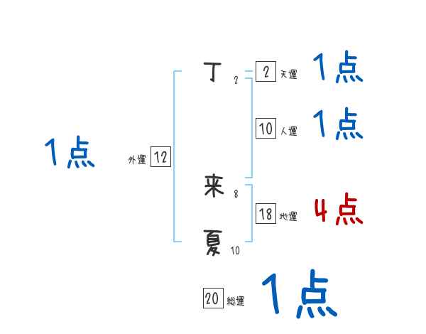 丁来夏さんの画数の鑑定結果