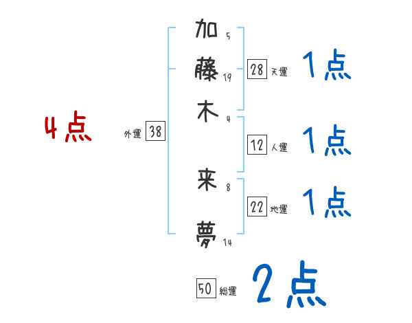 加藤木来夢さんの画数の鑑定結果