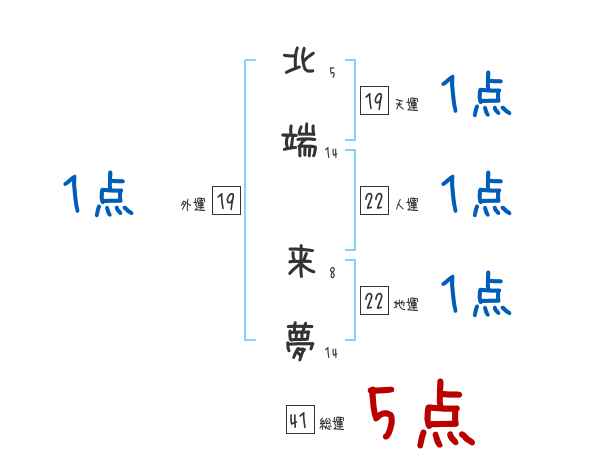 北端来夢さんの画数の鑑定結果