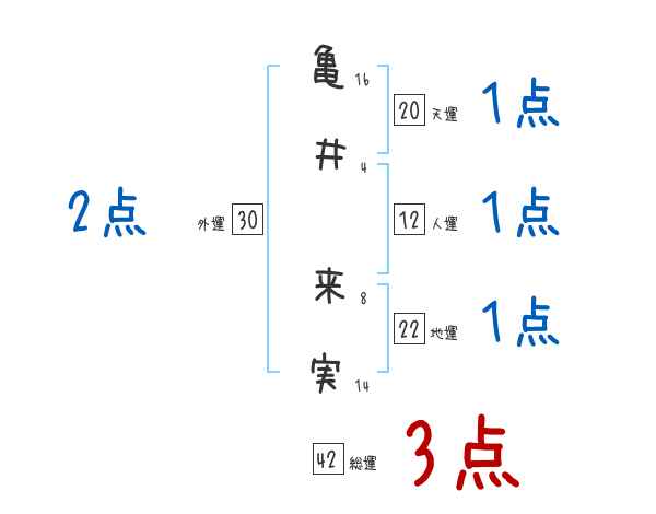 外運![]() | 亀井来実さんの外運は30画の2つ星!浮き沈みの激しさに注意しましょう。 生活面を象徴する運勢です。外部から受ける影響力を表し、結婚運、家庭運や職場、環境への順応性を表します。 |