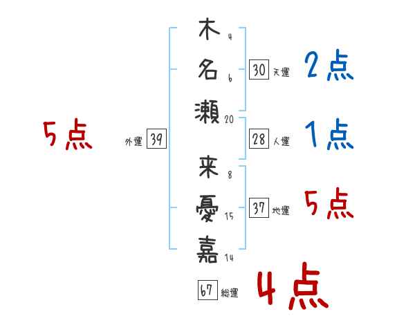 木名瀬来憂嘉さんの画数の鑑定結果