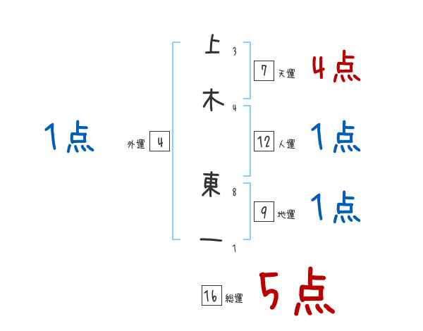 外運![]() | 上木東一さんの外運は4画の1つ星!感情が不安定で苦労するかも。周囲との協調を心掛けましょう。 生活面を象徴する運勢です。外部から受ける影響力を表し、結婚運、家庭運や職場、環境への順応性を表します。 |