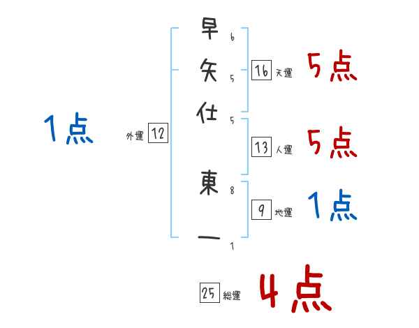 早矢仕東一さんの画数の鑑定結果