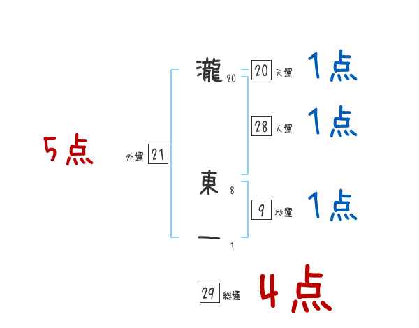 外運![]() | 瀧東一さんの外運は21画の5つ星!統率力がある。独立し成功する。名誉を手に入れる。 生活面を象徴する運勢です。外部から受ける影響力を表し、結婚運、家庭運や職場、環境への順応性を表します。 |